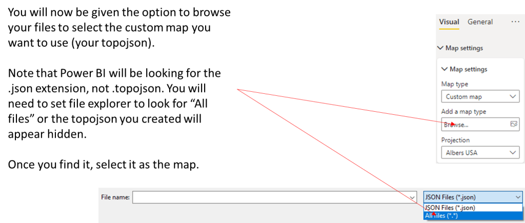 5. Click on “Add a map type”, click on “All Files (*.*) and browse to the location of your TopoJSON file and select it.